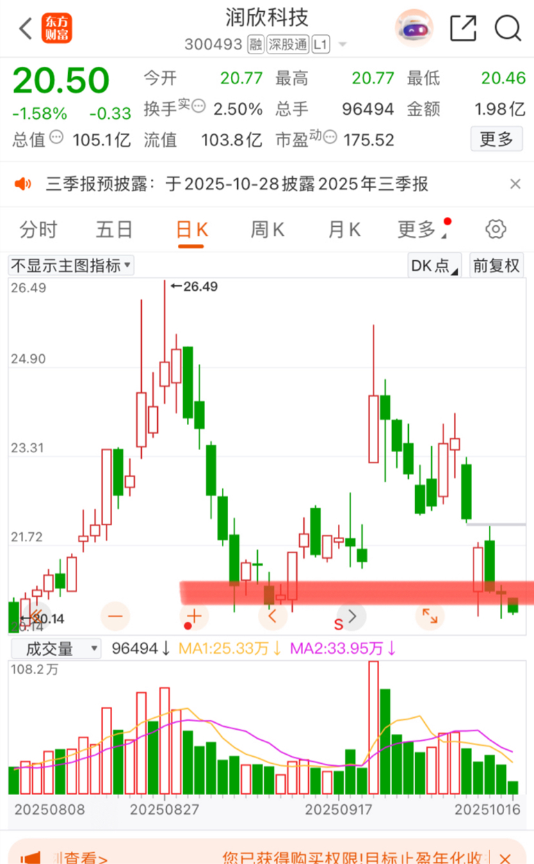 $润欣科技(SZ300493)$ 前低都破了,破位了,暂时不能建仓,啥时候横盘小阳小阴企稳了,应该就可以轻仓位慢慢建仓了