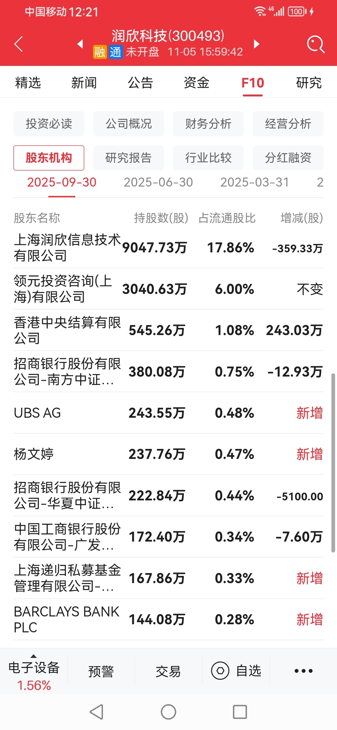 $润欣科技(SZ300493)$ 新增两家外资银行进入,捂盘吸货,难怪不升