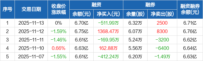 润欣科技:融资净偿还511.99万元,融资余额6.7亿元(11-13)
