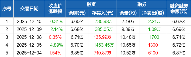 润欣科技:融资净偿还730.98万元,融资余额6.6亿元(12-10)
