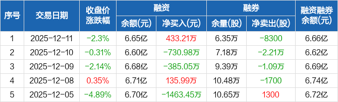 润欣科技:融资净买入433.21万元,融资余额6.65亿元(12-11)