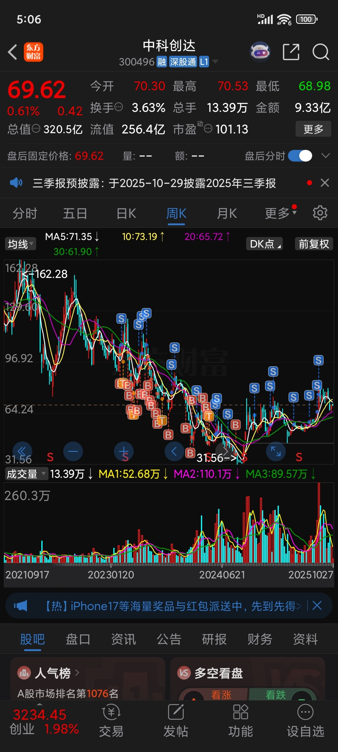$中科创达(SZ300496)$ 从2023.03的102元开始进,搞到现在算是有点浮盈了。
