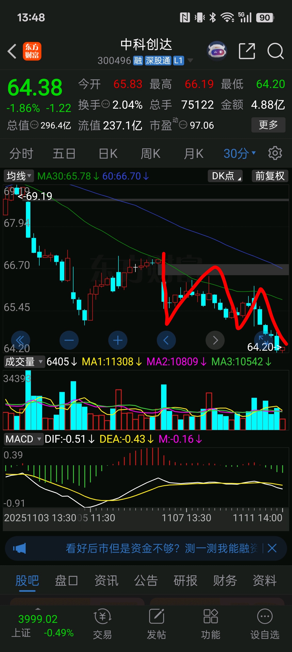 $中科创达(SZ300496)$ 30分钟开始反弹