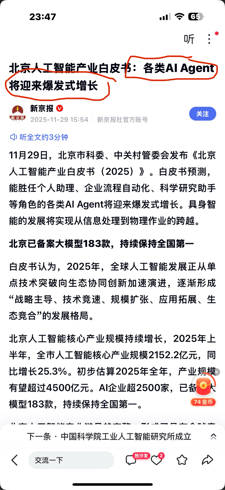 今天消息,京人工智能产业白皮书指明,各类AIAgent将迎来爆发式增长,中科创达