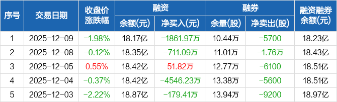 中科创达:融资净偿还1861.97万元,融资余额18.17亿元(12-09)