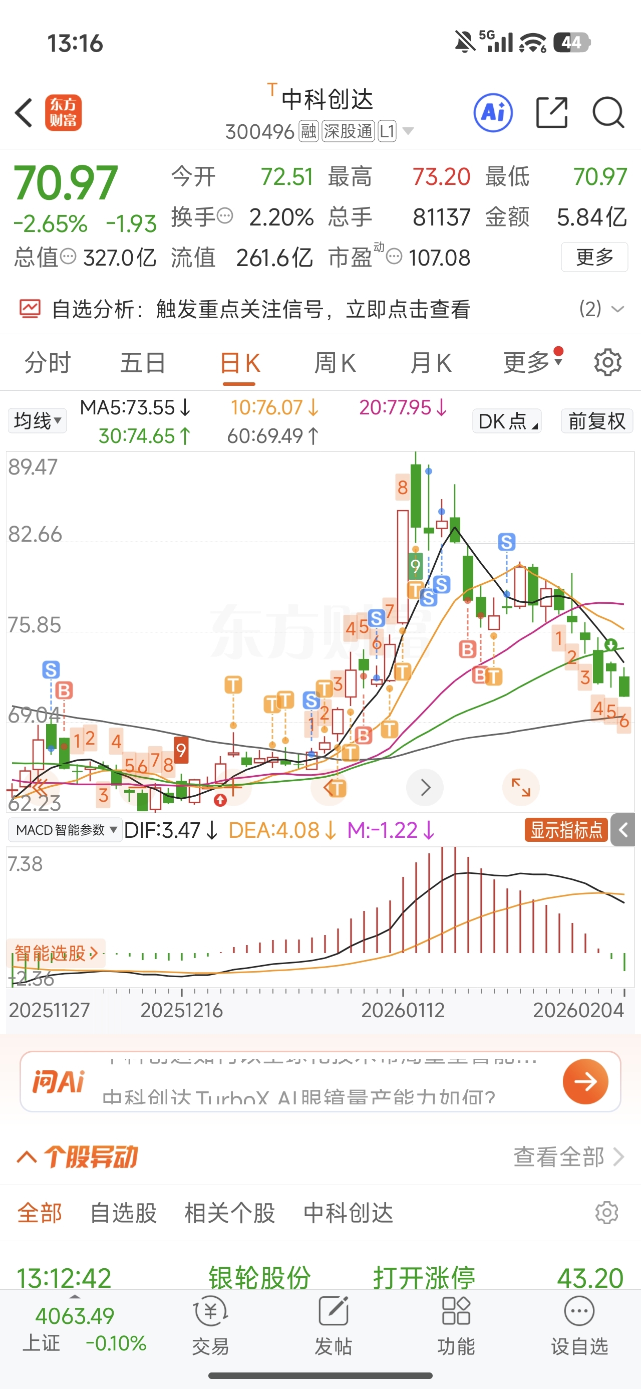 $中科创达(SZ300496)$ 进入调整周期