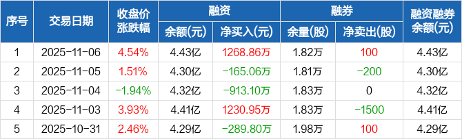 富祥药业:融资净买入1268.86万元,融资余额4.43亿元(11-06)