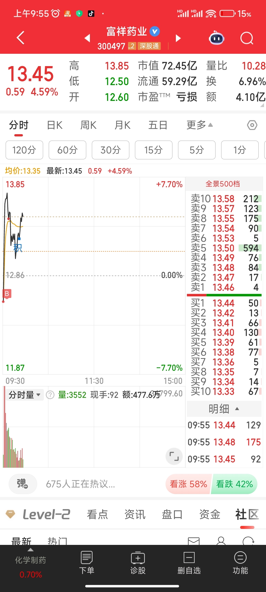 $富祥药业(SZ300497)$ 开盘就是最低点,挪仓位慢了