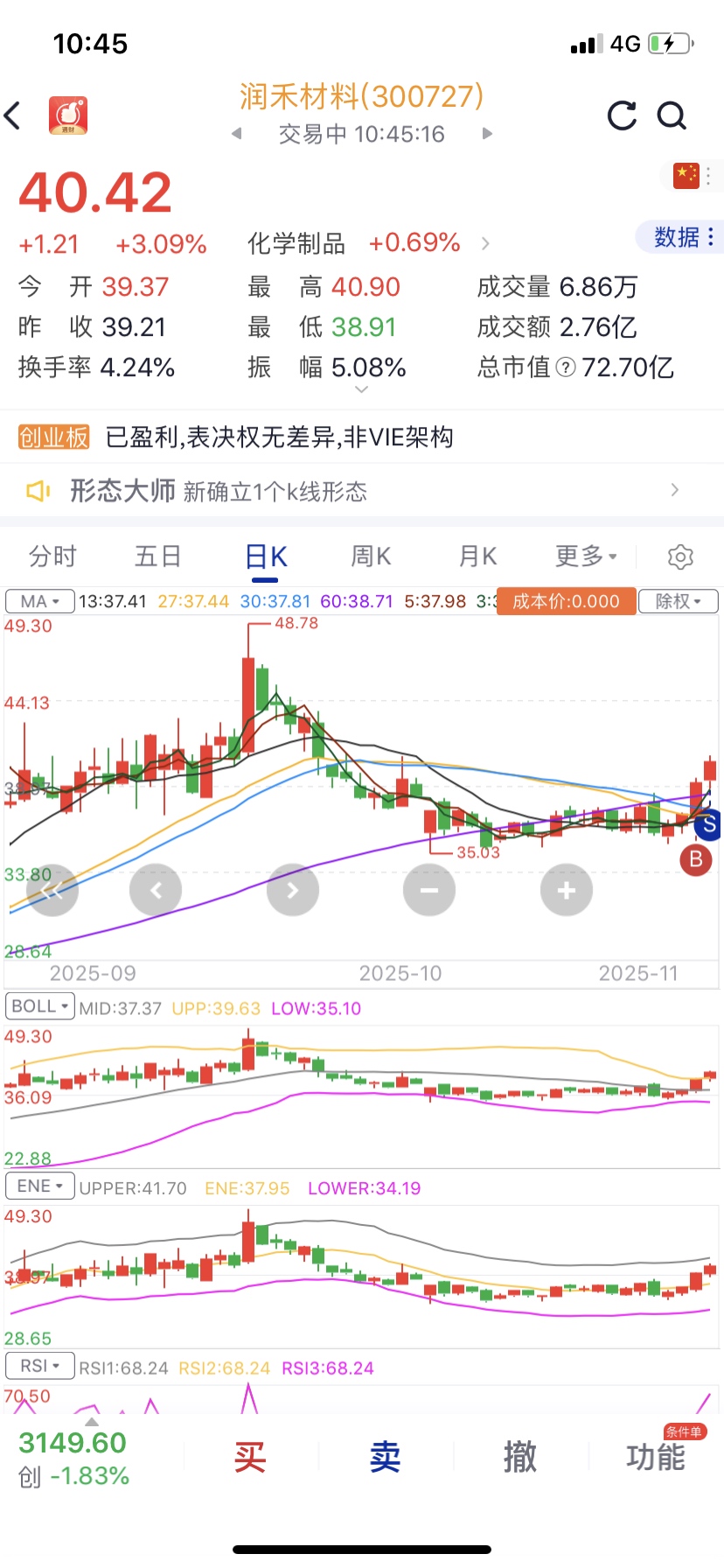 今天主打高低切换,虽然海峡创新和润和材料继续看涨,但是今天开盘海峡跌11%没有加到仓没有价格优势就干脆12块清仓了,