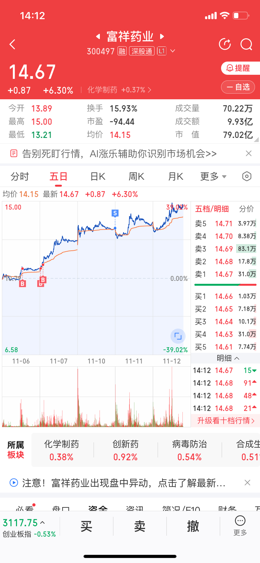 $富祥药业(SZ300497)$ 跑别处到处挨打 这么高也不敢进了
