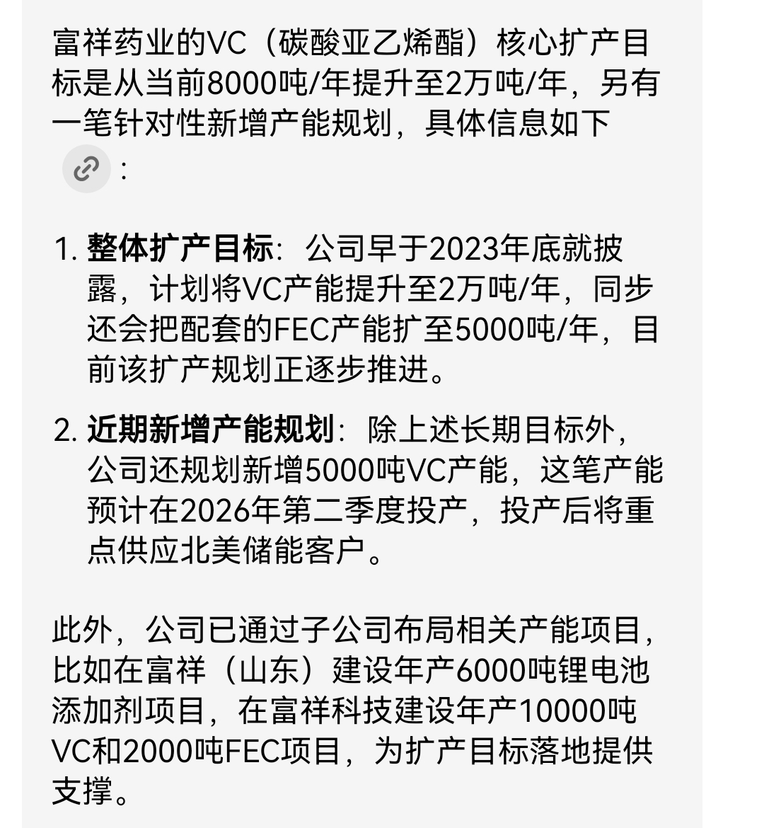 $富祥药业(SZ300497)$ 富祥的vc熬了这么多年,终于熬出头了。8000吨+20000吨扩产。还有谁?!!
