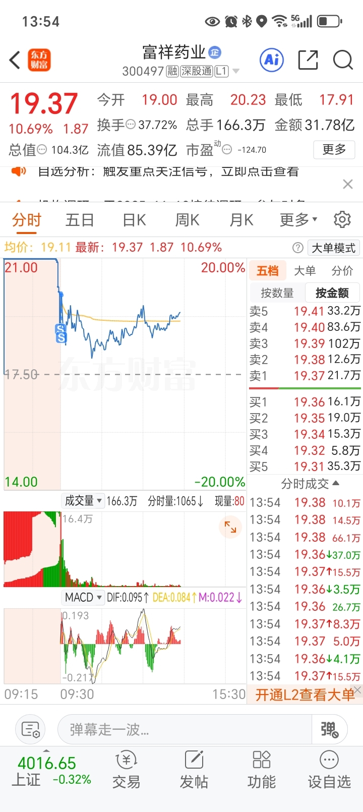 $富祥药业(SZ300497)$ 昨天买入,今天卖出,大长腿短线