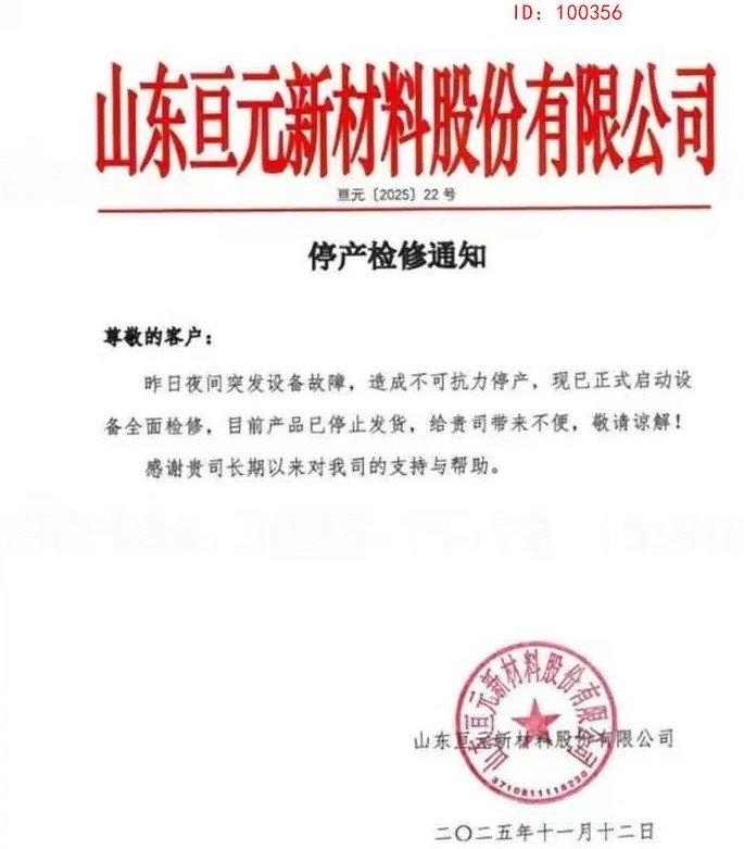 山东亘元2025年11月12日发布VC停产公告,如果只是普通的设备问题,正常是不