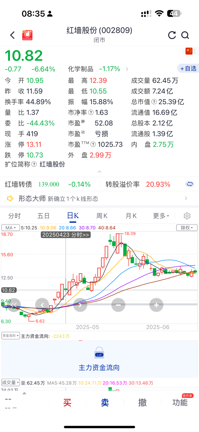 $富祥药业(SZ300497)$ 参考红墙股份423的走势