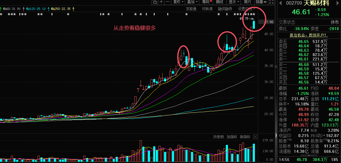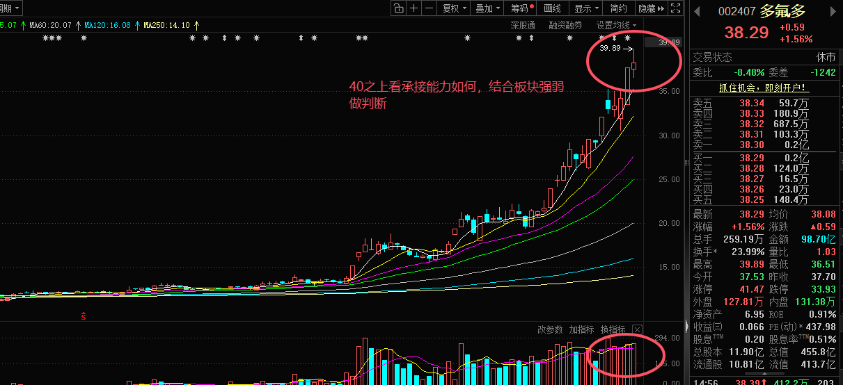像多氟多上周我提出过,股价上40以后,要观察强弱情况,如果有可能继续冲50,但如果板块或者炒作的太厉害也有可能受到监管层跟市场紫金共振引发降温的可能性,毕竟这一波锂电池它不是刚刚出来,而是产业链再奔跑的过程中的一次摔倒爬起来的一个反弹机会。后面差能一旦跟上以后,这些原材料价格也会慢慢恢复到平均水平。所以这一波短炒如果抓住了当然不错,但也不能脱离实际基本面,一窝蜂的无限夸大。这个时候要保持一些理性来看待问题。别被网上的水贴带坏了节奏。毕竟咱们的账户数字都不是欢乐豆,不值得听信外人的妖言。