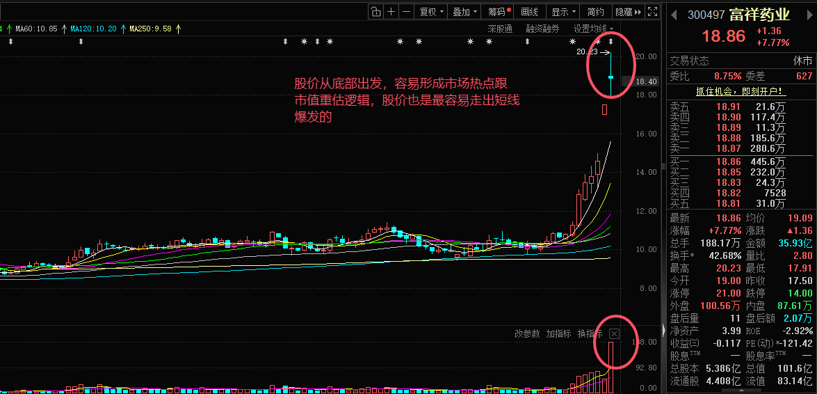 如果这一波富祥药业能走出美股的那种起势,那么这一波股价很有可能顺应当下的节奏跟环境做出反馈。