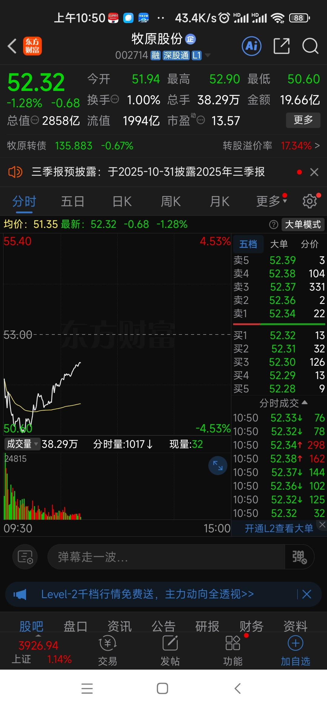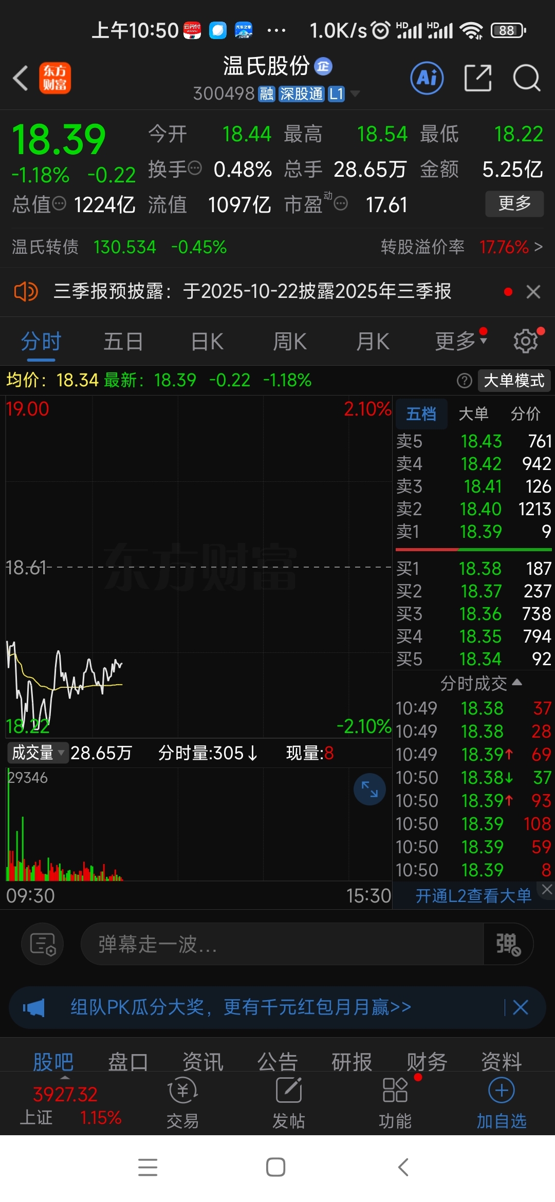 $温氏股份(SZ300498)$ 不要看温氏股价便宜,便宜是有原因的,和牧原同样是营收上千亿的猪肉佬,牧原他就是比温氏强,这个从日内走势就可以看出来,即使牧原跌的多,但是他涨的也快,很快就可以收回跌幅。