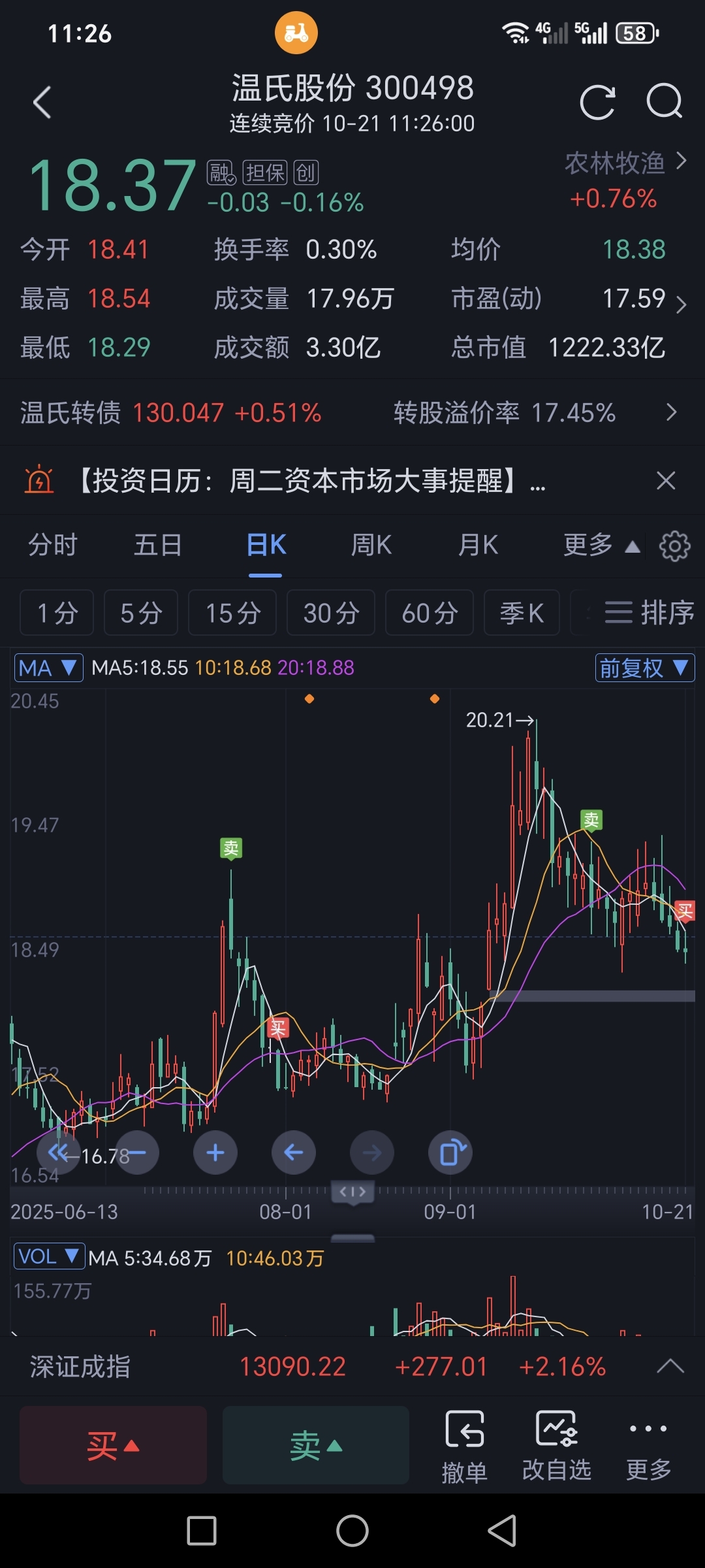 $温氏股份(SZ300498)$ 兄弟们,我还是全仓回来了,虽然没赚到多少价差,这股就是跌不下去啊