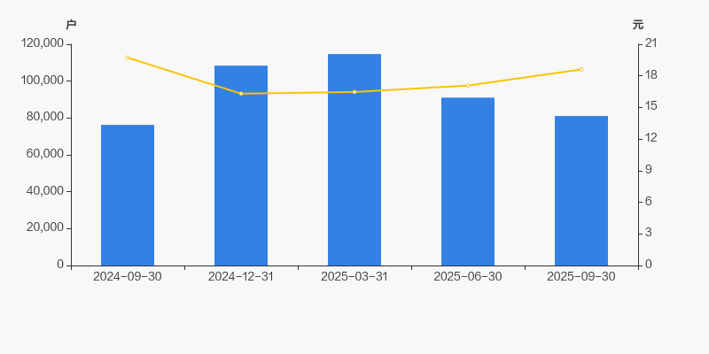 2024年9月30日至今,公司股东户数有所增长,区间涨幅为6.33%。2024年9月30日至2025年9月30日区间股价下降5.67%。