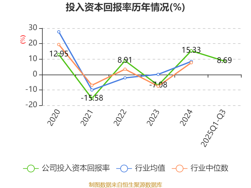 盈利能力方面, 2025年前三季度公司加权平均净资产收益率为12.4%,同比下降5.37个百分点。公司2025年前三季度投入资本回报率为8.69%,较上年同期下降1.94个百分点。