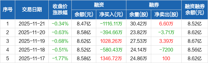 温氏股份:融资净偿还1116.11万元,融资余额8.47亿元(11-21)
