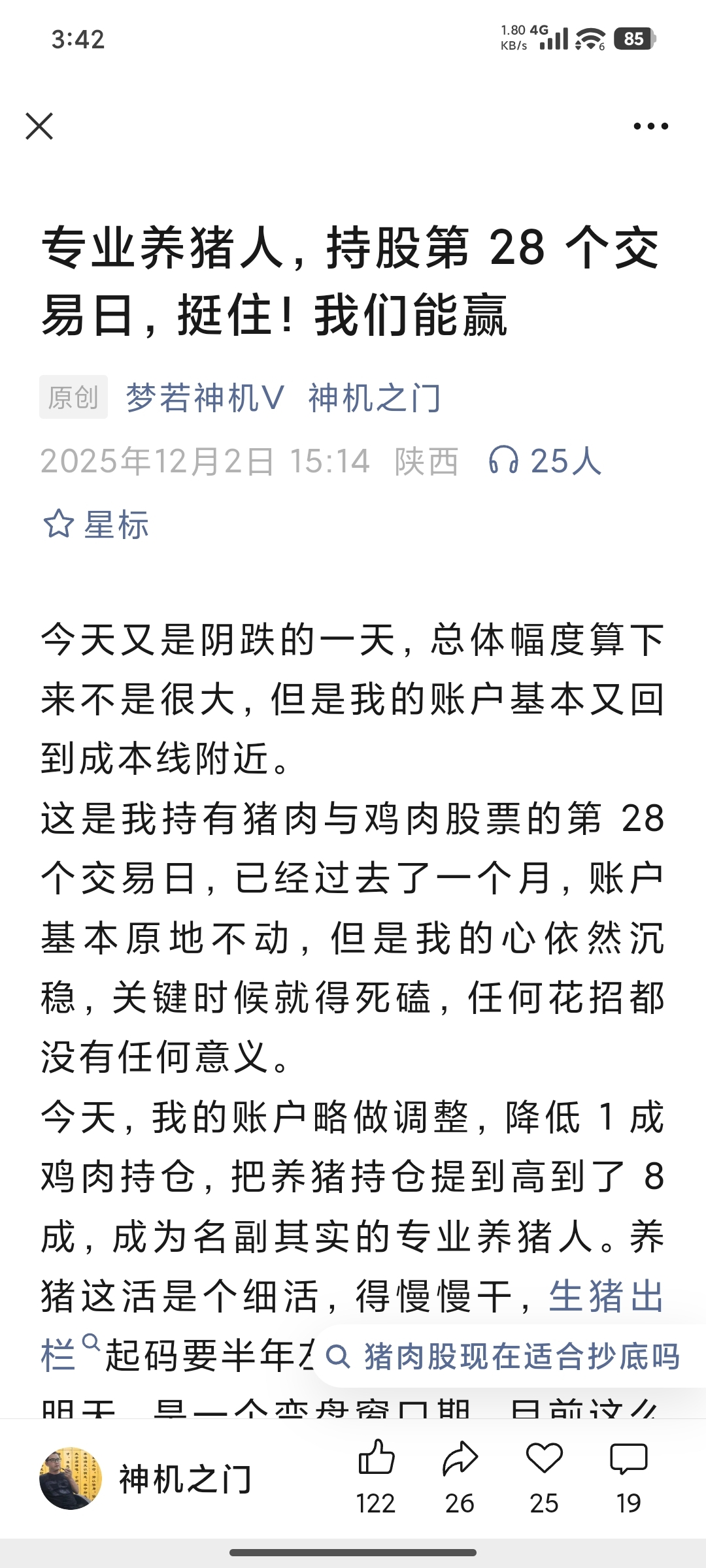 $温氏股份(SZ300498)$ 神机套了2个点了