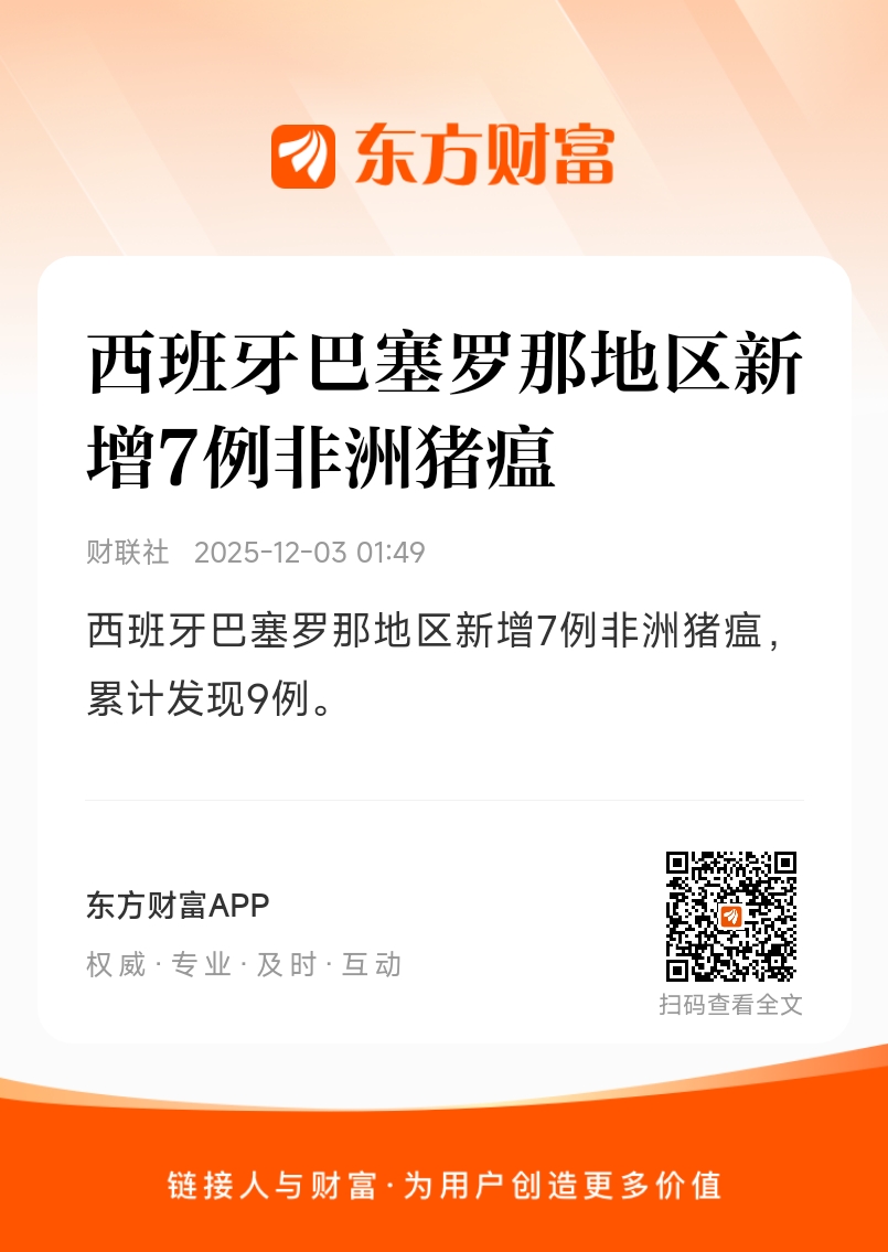西班牙巴塞罗那地区新增7例非洲猪瘟,累计发现9例。