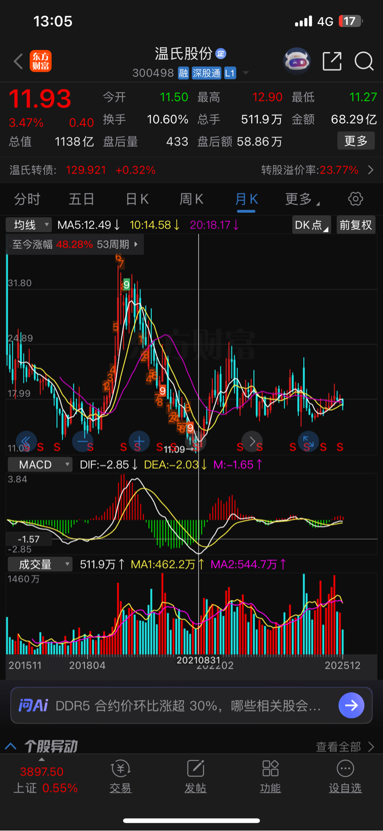 $温氏股份(SZ300498)$ 长年雷月的跌
