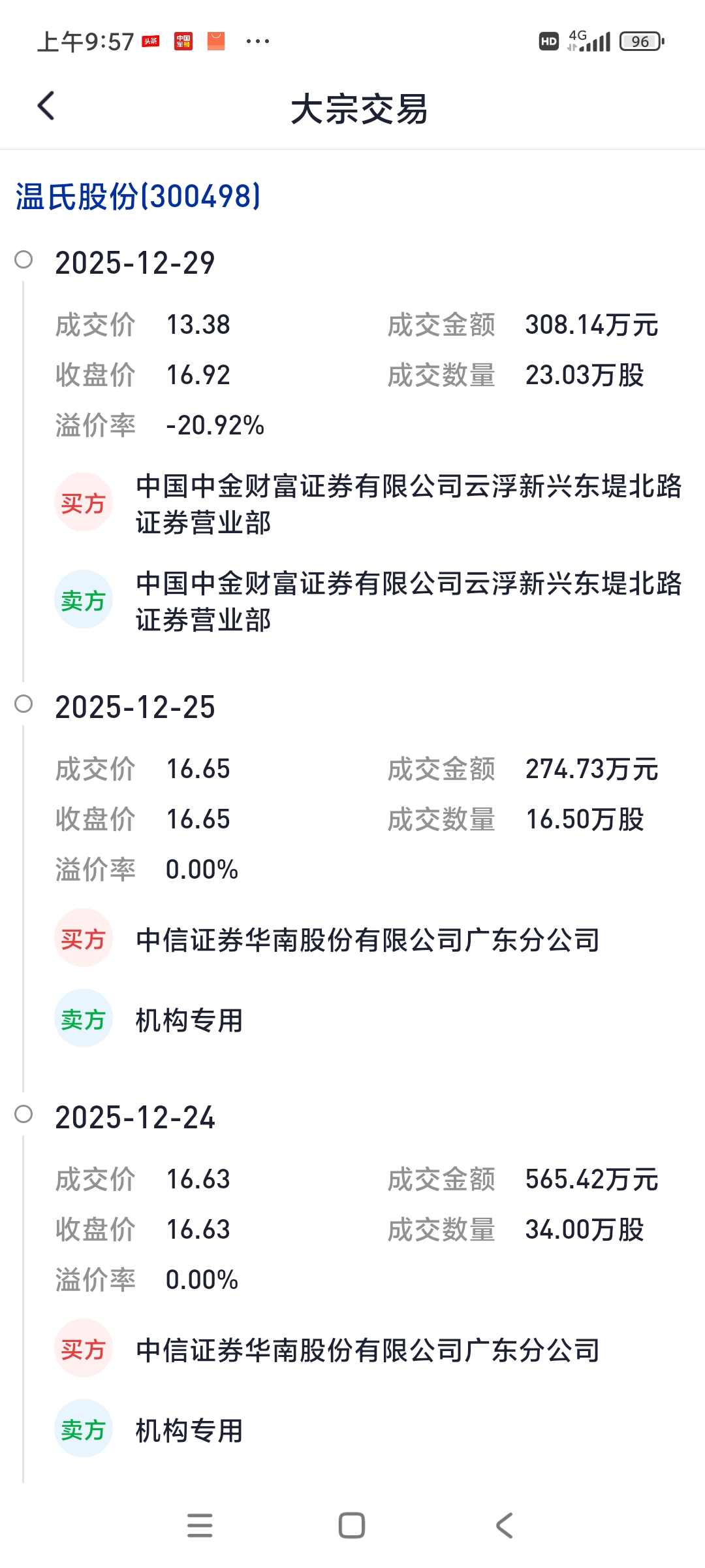 $温氏股份(SZ300498)$ 这股为什么大宗交易 每次都是打骨折。谁在跑