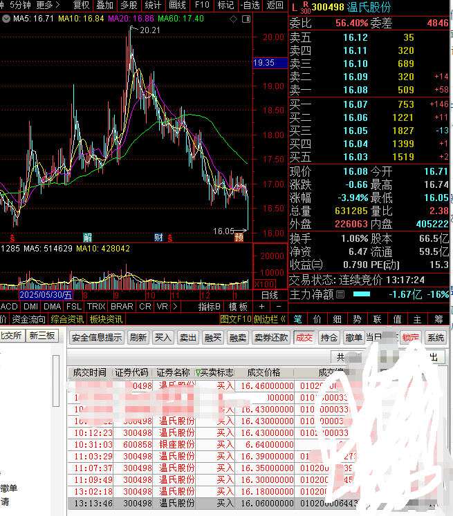 1月16交割:进。温氏股份16.06算最低?猪肉周期底位置。神仙打架牛市新低放量。今天只要是吃猪肉,除了早上进的$康强电子(SZ002119)$ $沃尔核材(SZ002130)$ $罗平锌电(SZ002114)$ 这些是早上进场的肉,下午就一路吃猪肉了。
