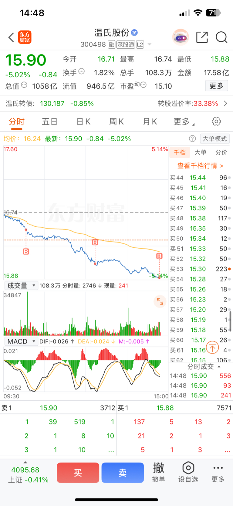 $温氏股份(SZ300498)$ 兄弟们,我尽力了,实在是主力砸盘的太多了,根本买不完