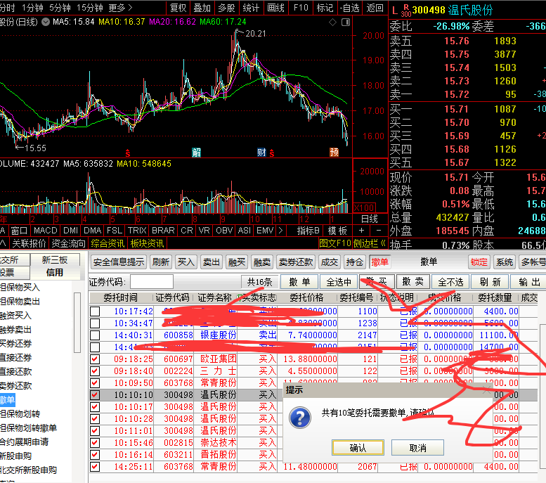 1月22号14:50马上收盘,温氏股份快砸新低给点成交?不然又白挂单半天我的挂单