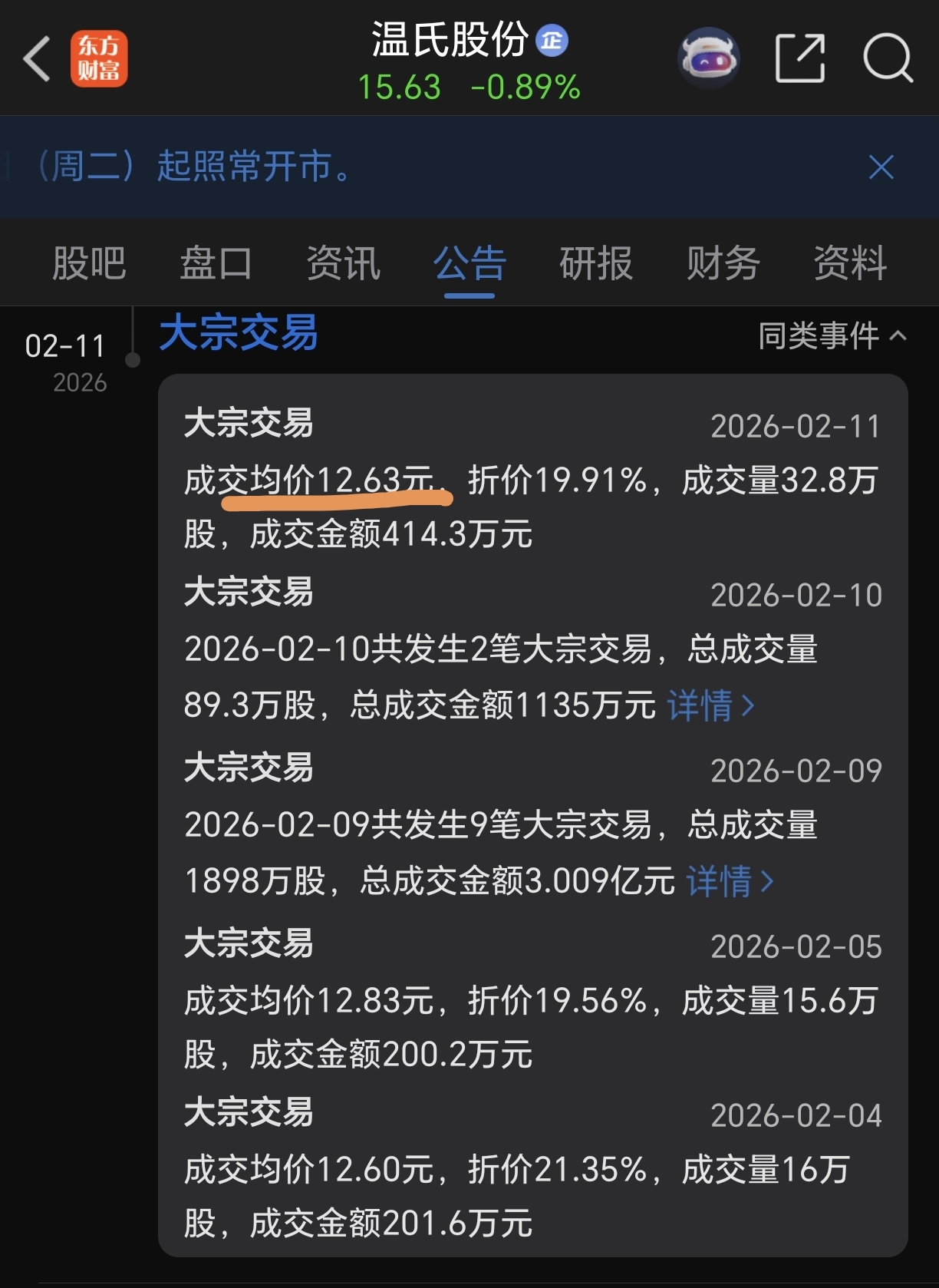 $温氏股份(SZ300498)$ 大宗交易又开始了,人家成本12.63元,至少13附近才有价值,不然就是被人家低价卖给你