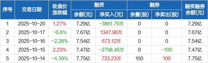 高澜股份:融资净偿还3861.79万元,融资余额7.29亿元(10-20)
