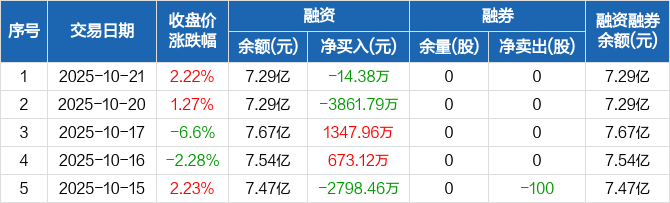 高澜股份:融资净偿还14.38万元,融资余额7.29亿元(10-21)