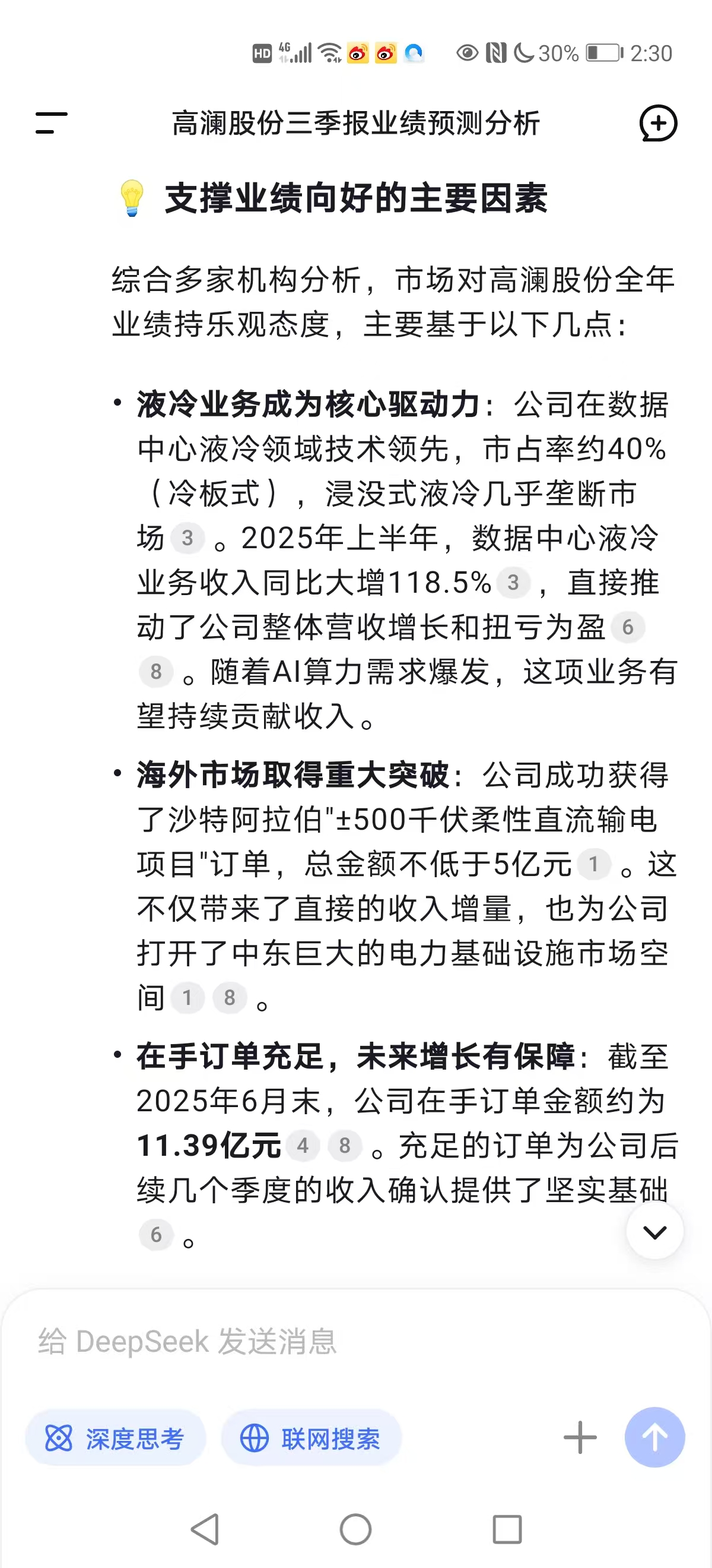 10月23日晚上生益电子发布业绩预增,预计本期净利润增长10.74亿-11.54亿,同比预增超476%,10月24日开盘20cm一字涨停。高澜股份中报净利润增长1438.6%,三季报预增超1000%绝对没问题,下周一开盘高开10%或20cm一字涨停开盘概率非常大。