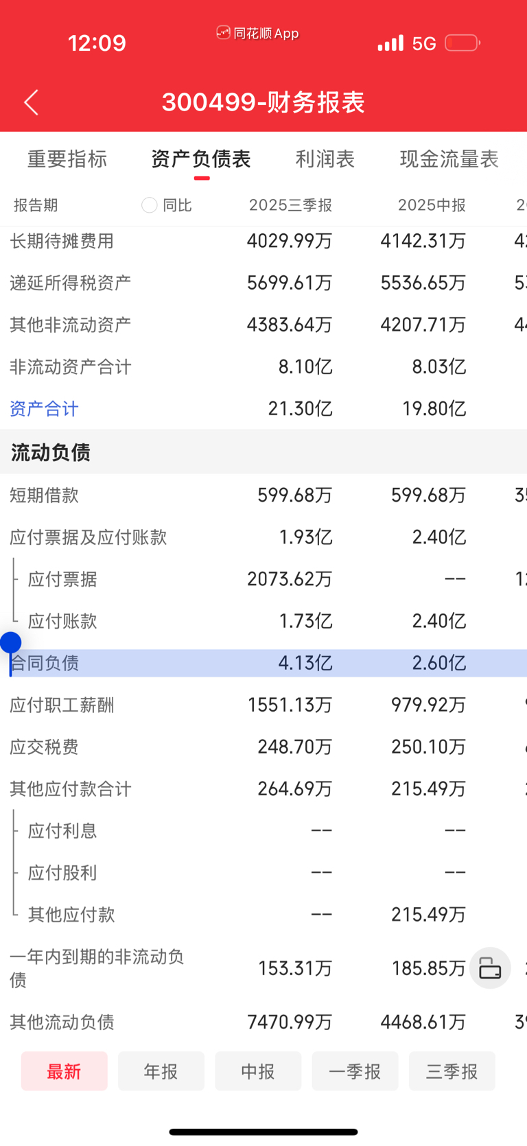 $高澜股份(SZ300499)$ 合同负债比上季度增加1.5亿,说明业绩真的开始爆了!就是产品供不应求,没交货单子多!年报业绩妥妥1亿以上!!