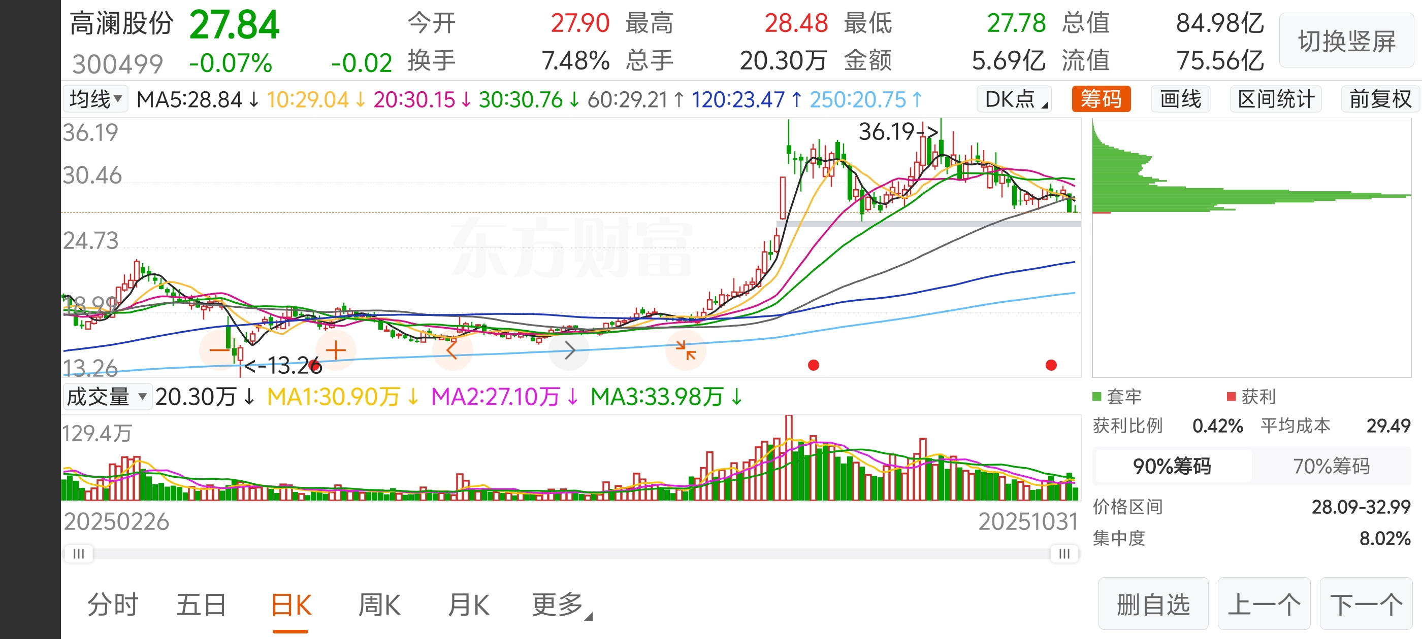 $高澜股份(SZ300499)$ 还没人割肉,下跌还不够,要继续跌才行。24-26支撑