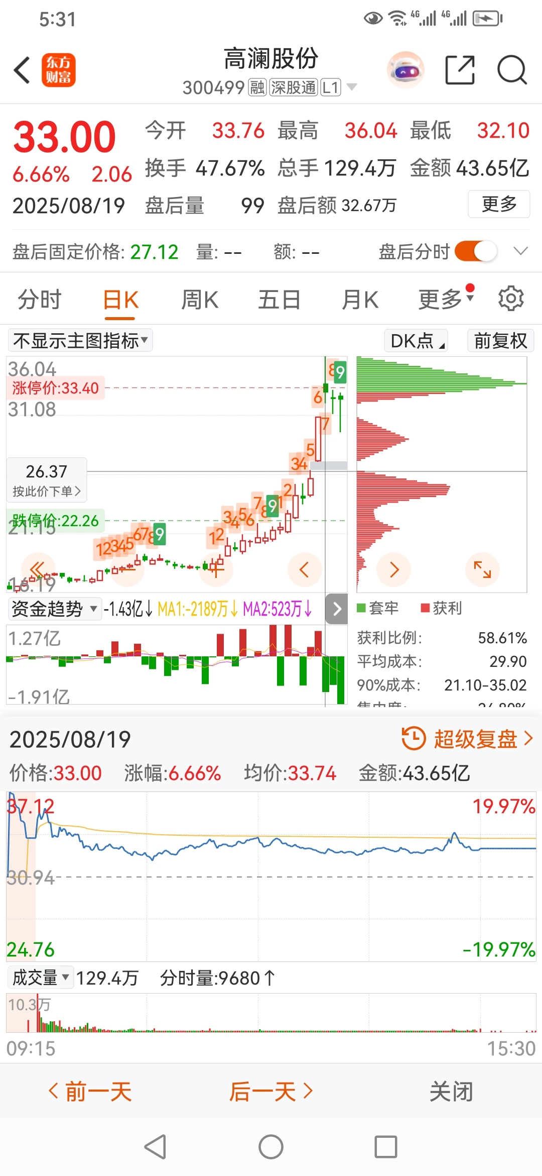 军哥,创业板炒作买卖股票,高澜股份,创业板上涨20%,然后下跌