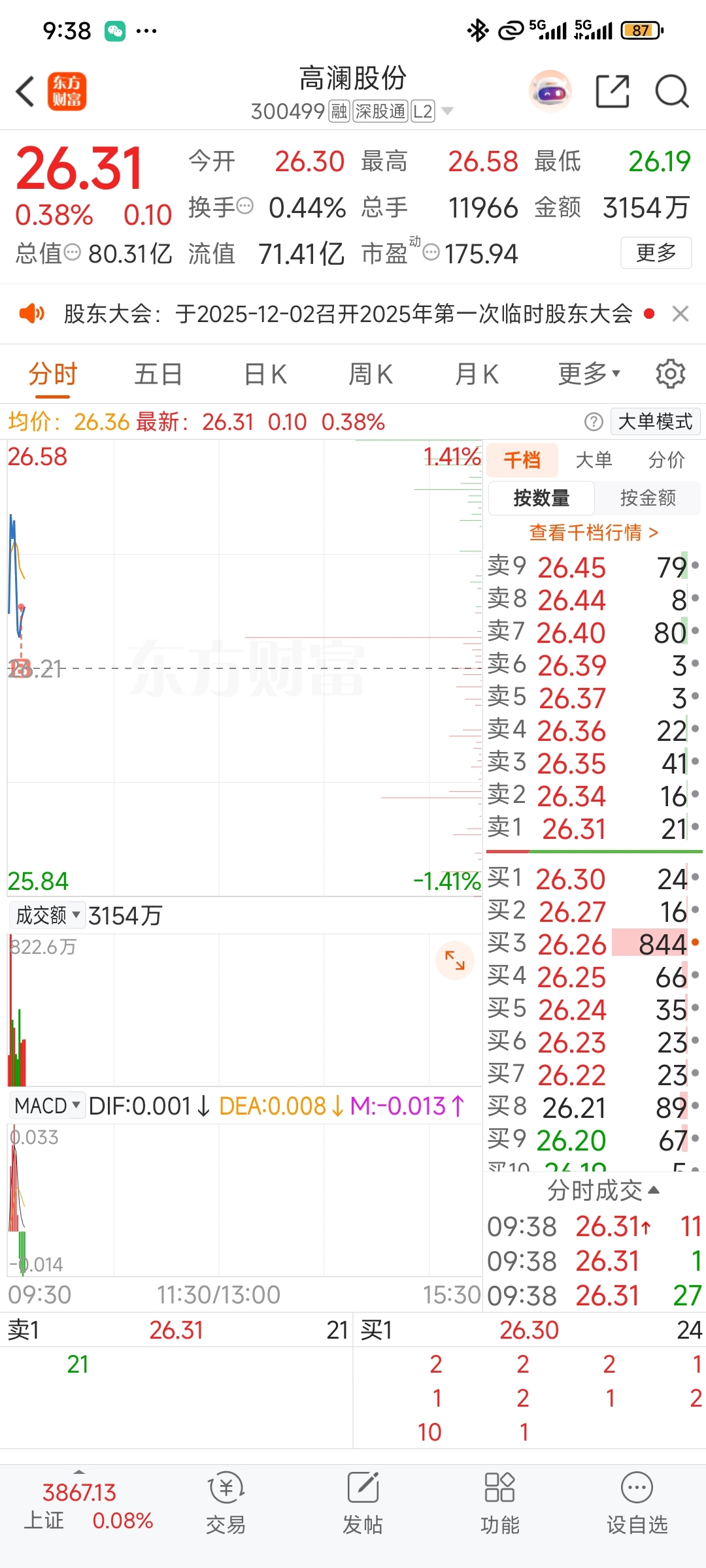 $高澜股份(SZ300499)$ 再次26.30,感觉非常不妙,没买的先别进,一点不强