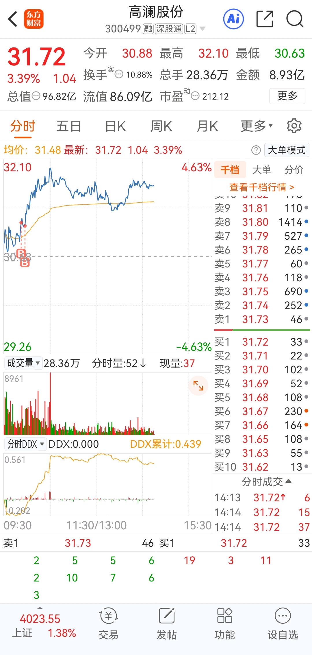$高澜股份(SZ300499)$ $高澜股份(SZ300499)$ 短线我的投降了,今天继续涨应用不涨硬件啊,蓝色光标,掌阅科技等等,都起飞了,还是继续大涨