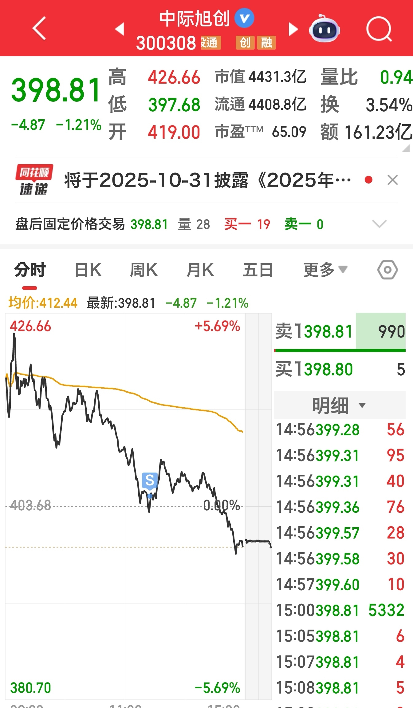 今天10月份首个交易日,开门黑!$中际旭创(SZ300308)$ 高开低走第二天跌破20日多头生命线,按原则在404.88元止损出局;工业富联在68.88元止盈离场;47.44元和46.4元新建仓半导体封测龙头$长电科技(SH600584)$ (计划买入的通富微电一字板买不到);第一次14.75元尝试买入港股$微创医疗(00853)$ 练练手。