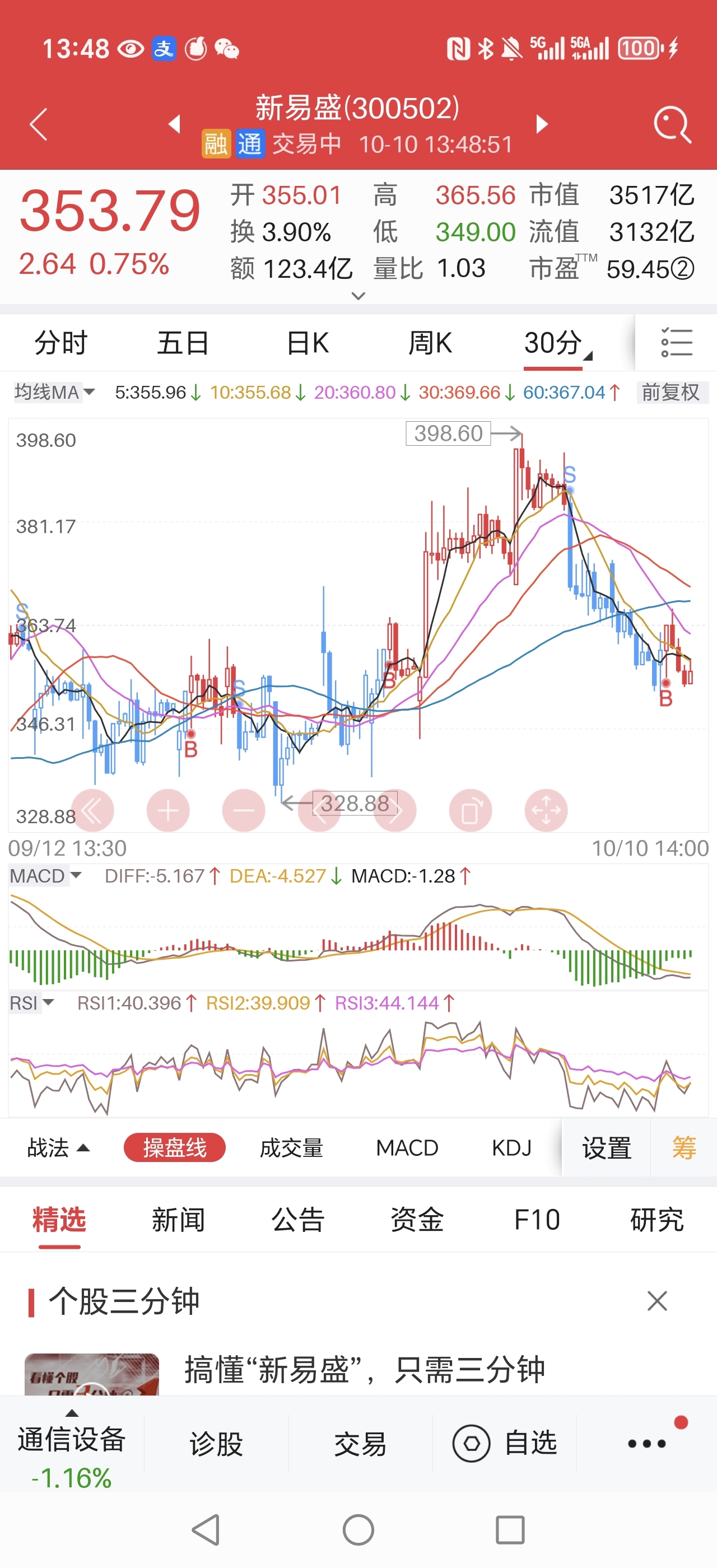 $新易盛(SZ300502)$ 说绿的人,不会想到尾盘会翻红上涨的,30分钟底背离