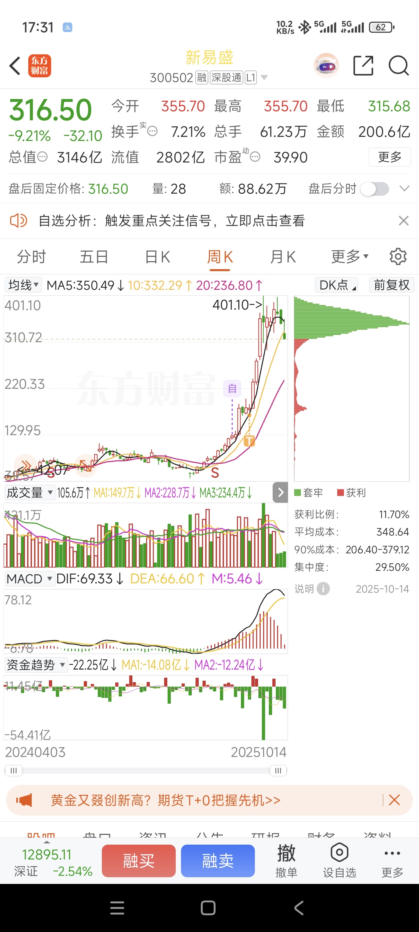 $新易盛(SZ300502)$ 山顶的人不孤独,筹码太多了