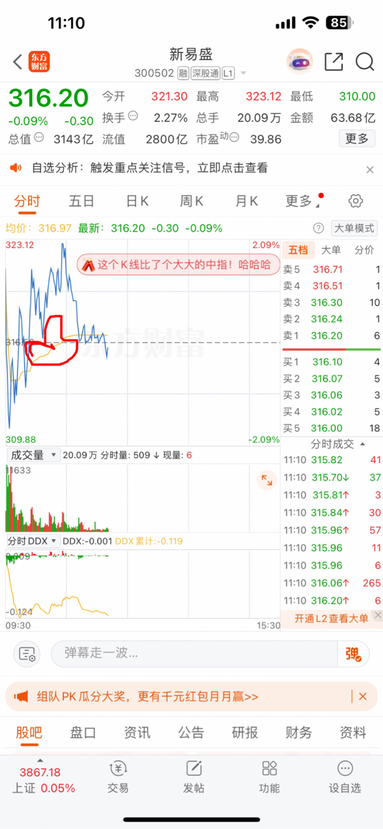 $新易盛(SZ300502)$ 空头非常强大!哈哈哈哈还比了个中指!