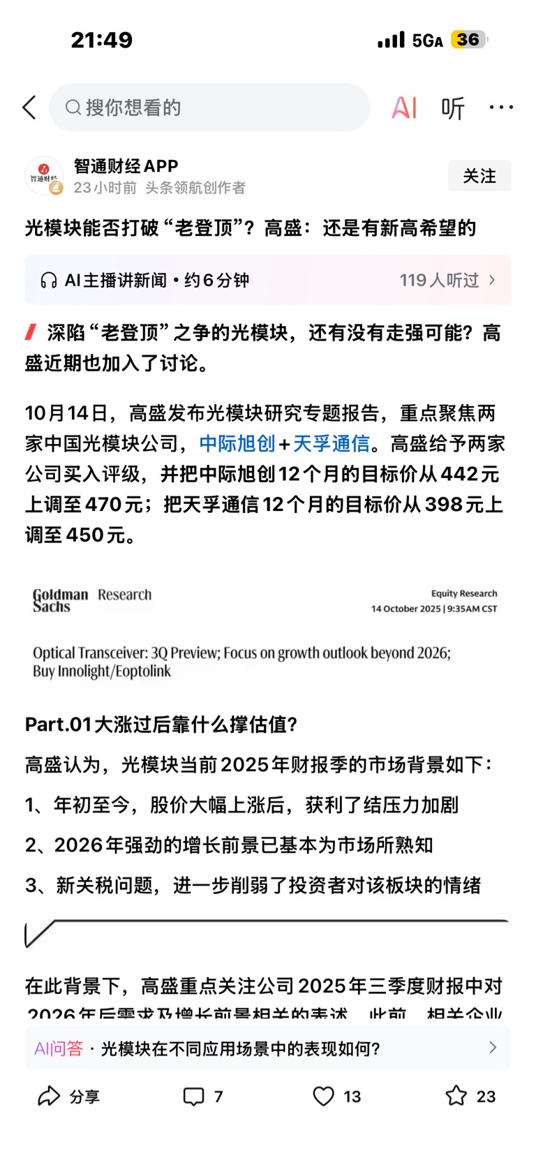 $新易盛(SZ300502)$ 高盛上调新易盛12个月目标价至450元,中际旭创12个月目标价至470元