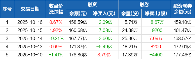 新易盛:融资净偿还2.09亿元,两市排名第三(10-16)