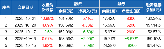 新易盛融资融券信息显示,2025年10月21日融资净买入5.11亿元;融资余额161.7亿元,较前一日增加3.26%。
