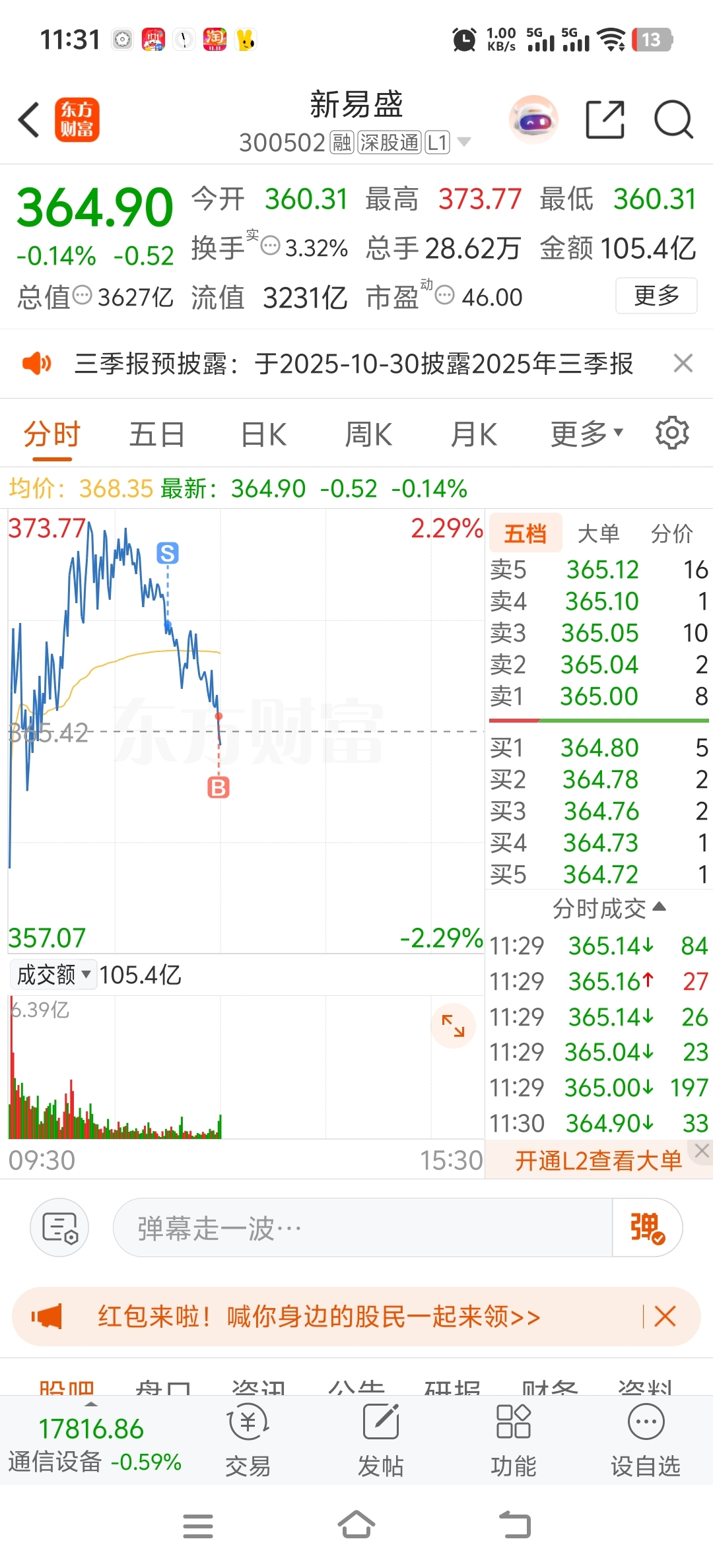 $新易盛(SZ300502)$ 板块不给力,清仓了,零轴补一手,继续下探的话收盘在慢慢建底仓了,感觉明天还得震荡,大哥中际新高也调整了