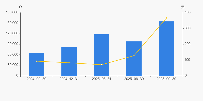 2024年9月30日至今,公司股东户数成倍增长,区间涨幅达139.40%。2024年9月30日至2025年9月30日区间股价上涨295.59%。